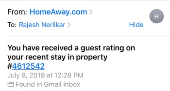 I recently stayed at a HomeAway property during a vacation in San Diego. A few days after I got home, this happened.