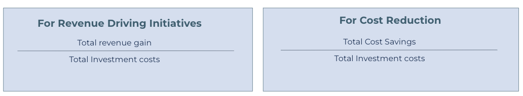 (note: the revenue driving calculation is for companies where revenue growth is the return they are looking to achieve. If profitability is the return you are looking to achieve, the numerator would be (revenue growth - investment costs))