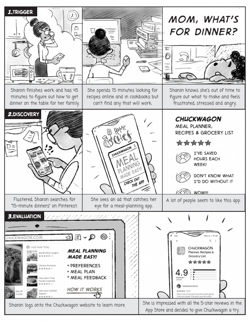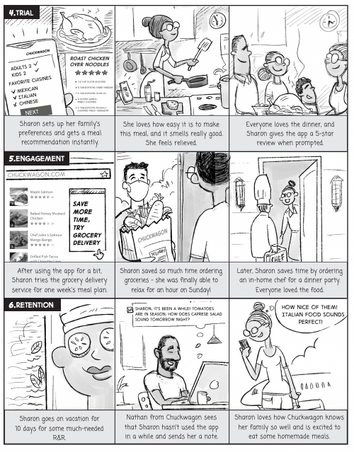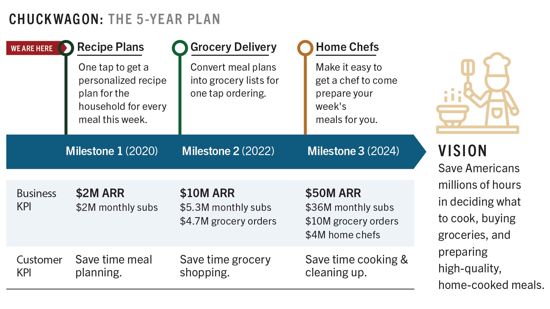 To illustrate the concepts of Vision-Led Product Management, we use an imaginary app we call Chuckwagon. Let's take a detailed look at the process of: